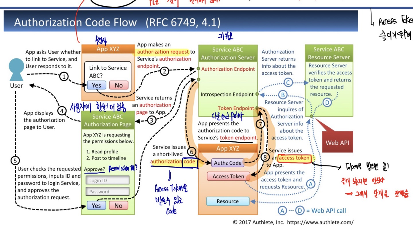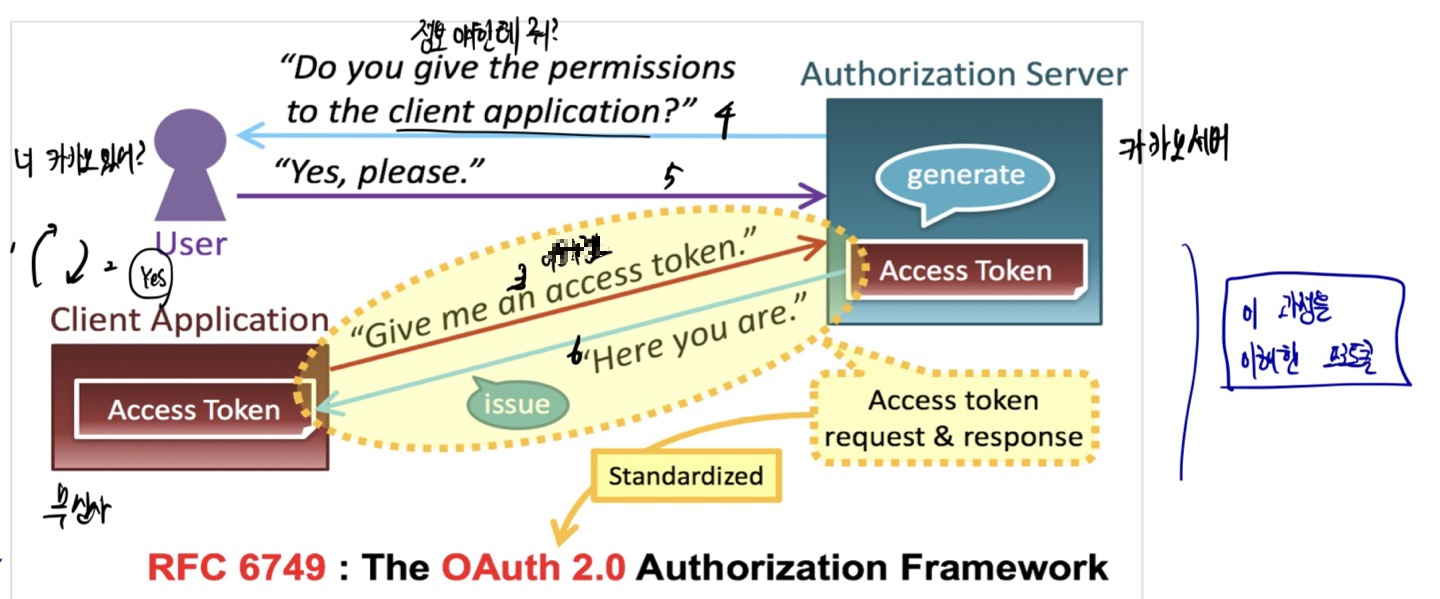 조금 더 세부적으로 이 과정을 설명하면 그림과 같은데 주목해야할 점은 6번의 과정에서 바로 Access Token을 발행하는 것이 아니다.