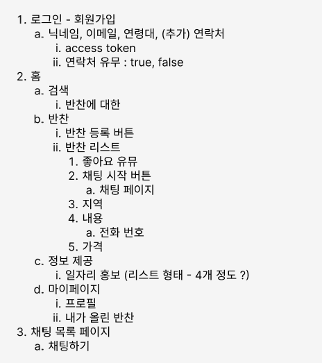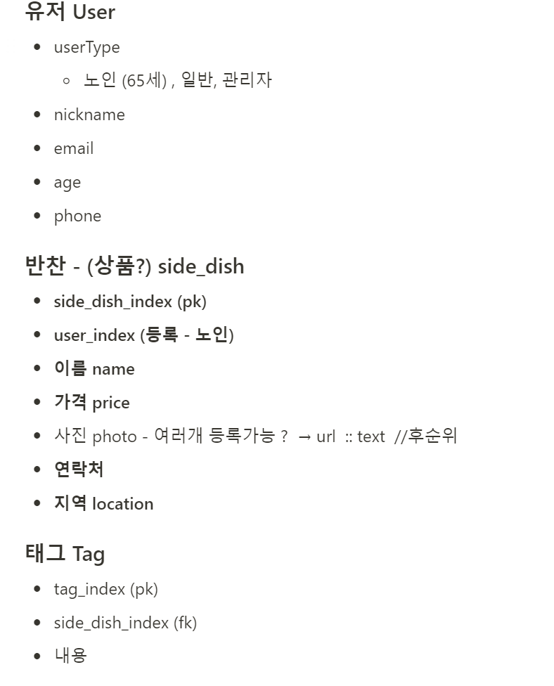 그리고 나도 기숙사에 살아서 집밥이 그리웠고 동주도 자취를 해서 집밥이 그리웠는지 둘다 반찬에 꽂혔다. 노인분들이 주변 자취생을 대상으로 집밥, 반찬을 판매하면 어떨까하는 생각이 들었고 이를 기반으로 4가지 정도의 메인 페이지를 구성했다.