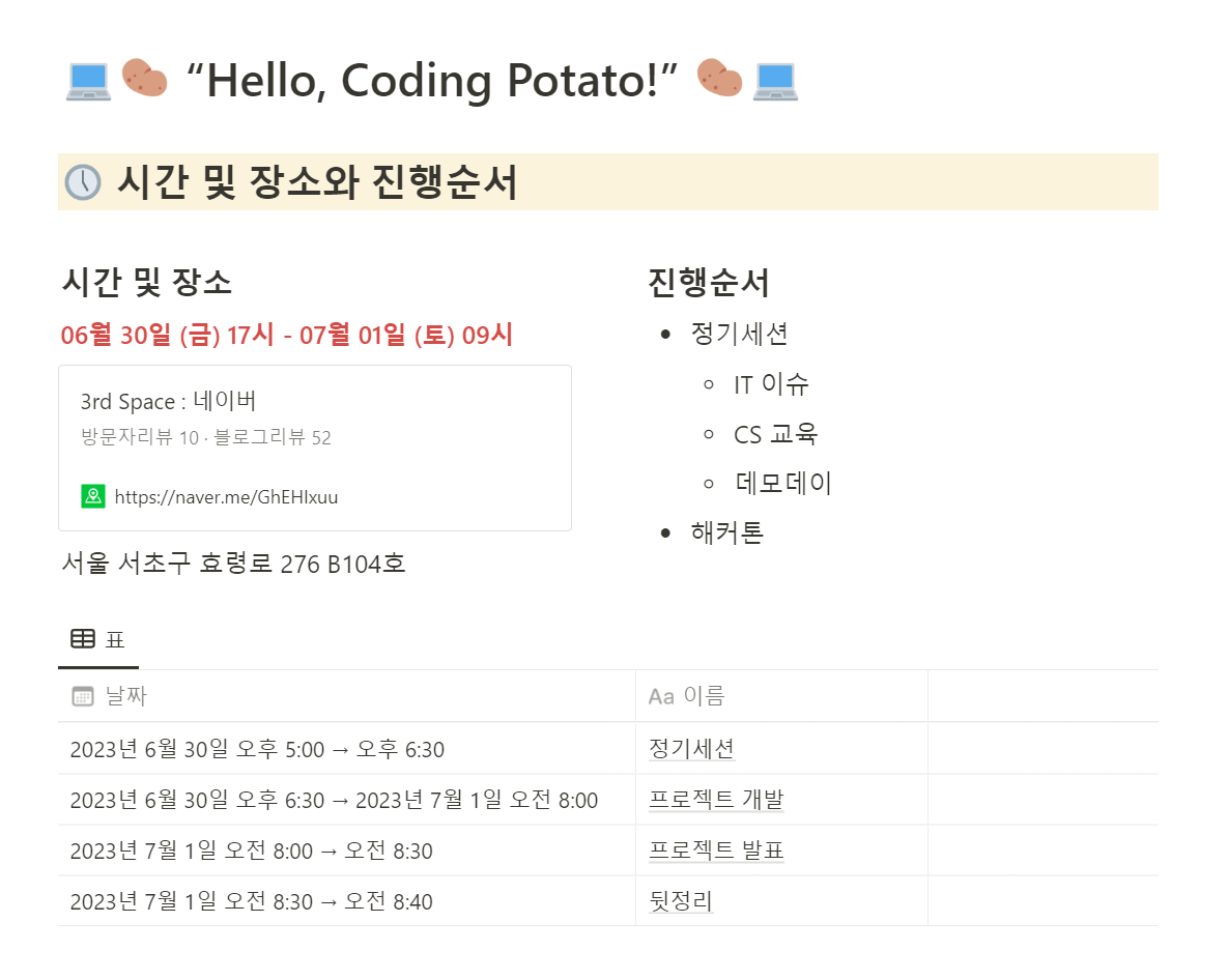 노션을 생성하고 전날 11시에 온라인으로 회의를 진행했다.