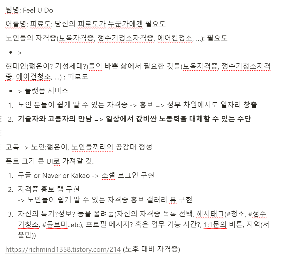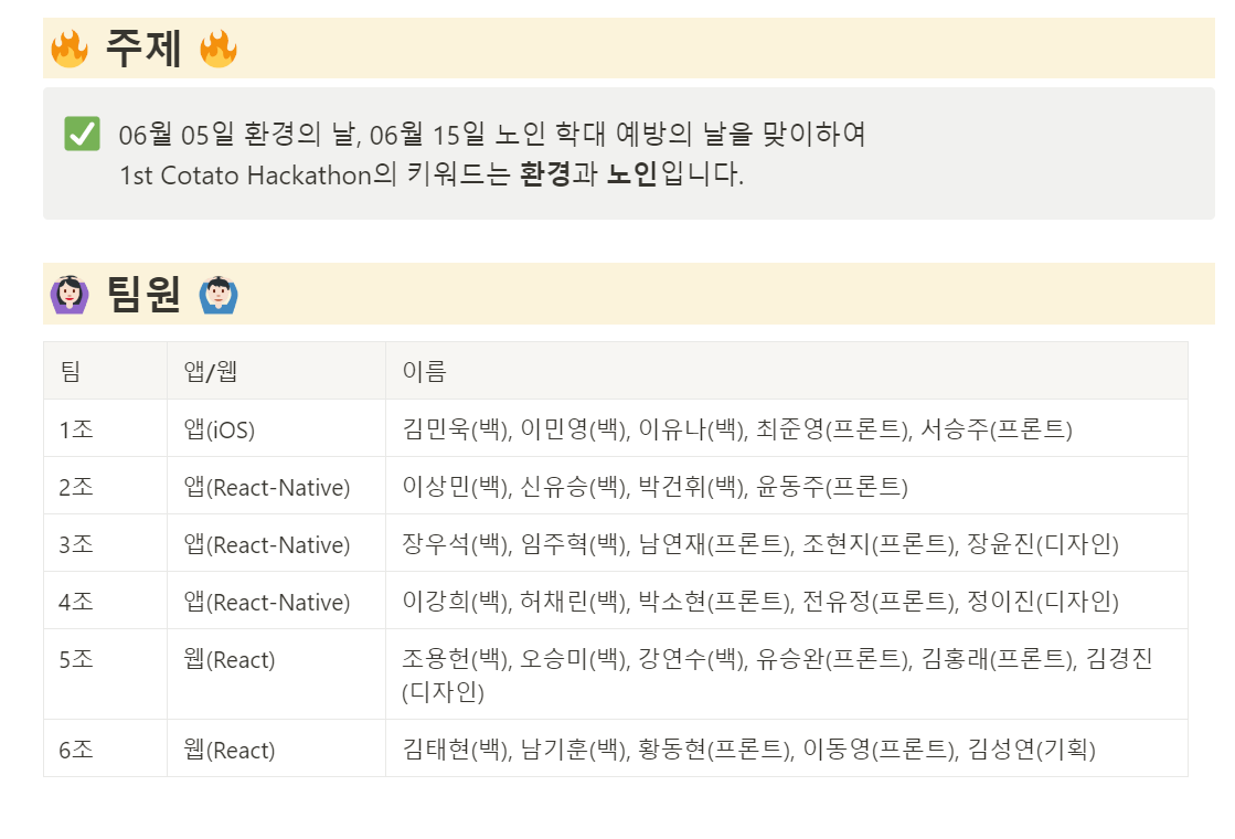사전에 주제와 팀을 미리 공지해줬다. 나는 스스로 아이디어가 부족하진 않다고 생각했는데 주제가 '환경'과 '노인'이었다. 다소 공익적인 주제이다보니, 뻔하디 뻔한 아이디어밖에 생각이 나지 않아서 걱정을 많이 했는데 팀을 보니..! 아이디어 머신이 한명있었따.