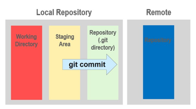 Staging Area 에 있는 파일을 하나의 버전으로 묶어서 .git directory로 이동시키는 명령어. 지금까지 tracking한 파일을 하나의 버전으로 묶어 로컬에 알리는 명령어이다.