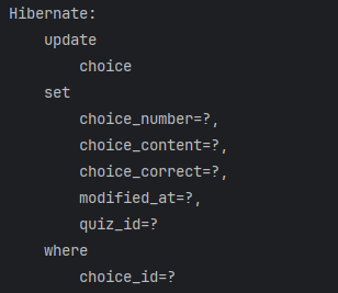 실제로, 이렇게 addChoices내부에 forEach로 matchMultipleQuiz 를 추가하면 불필요한 Update 쿼리가 나간다.