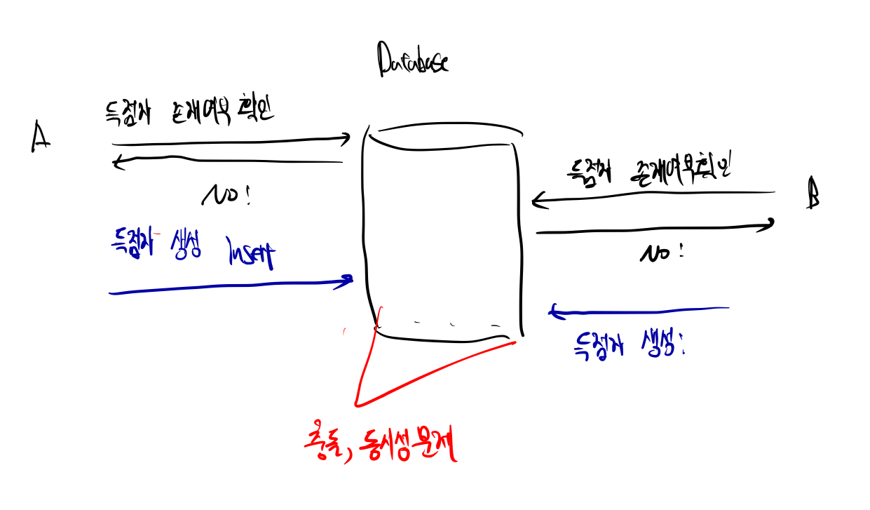 이후에 들어온 요청 B는 A가 작업을 완료할때까지 ‘득점자 존재 여부 확인’의 1번 작업을 할 수 없다.