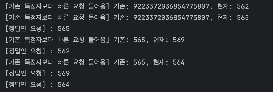 실제 비즈니스 로직에선 유효성 검사 등 추가 작업이 존재하고 각 스레드별로 작업 속도가 다르니 요청 순서를 보장하지 못하고 먼저 온 요청이 더 늦게 if문에 진입할 수 있다.