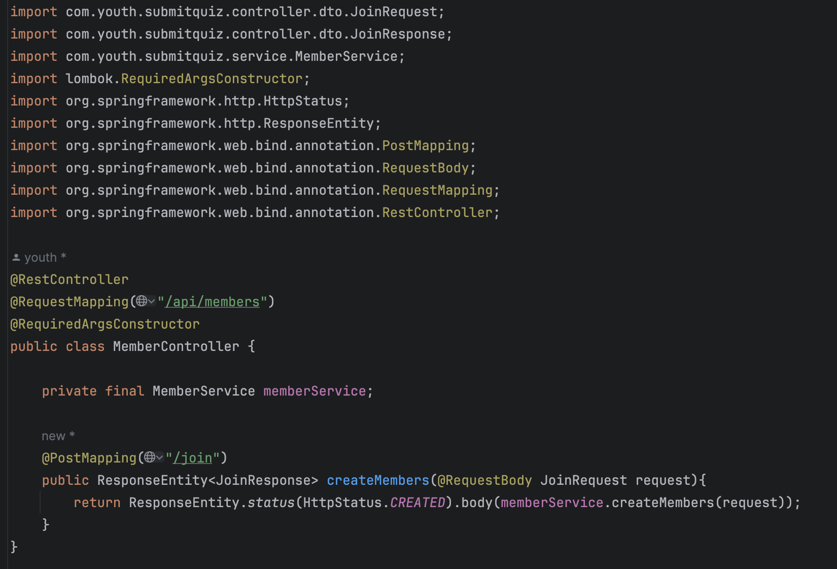 public ResponseEntity<JoinResponse> createMembers(@RequestBody JoinRequest request){
