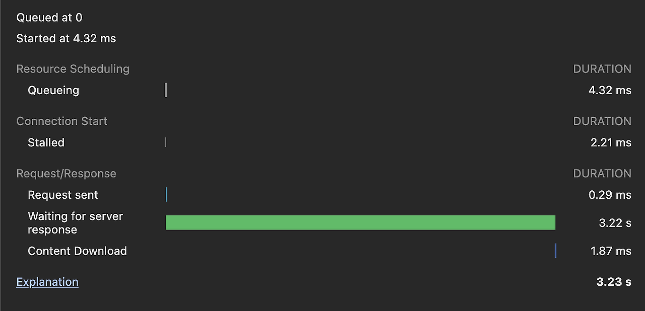 사실 하나의 요청만 보낸 것이라 이렇게 큰 차이가 없지만 여러 요청이 온다면 분명 시간 문제가 발생하지 않을까 싶었다.