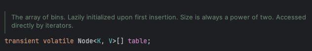 우선 위와 같이 값을 저장하는 table 변수를 volatile 로 선언한다. volatile 변수를 사용하면 여러 스레드가 공유하는 변수에 CPU 캐시를 이용하지 않고 값을 메인 메모리에서 직접 읽어온다.